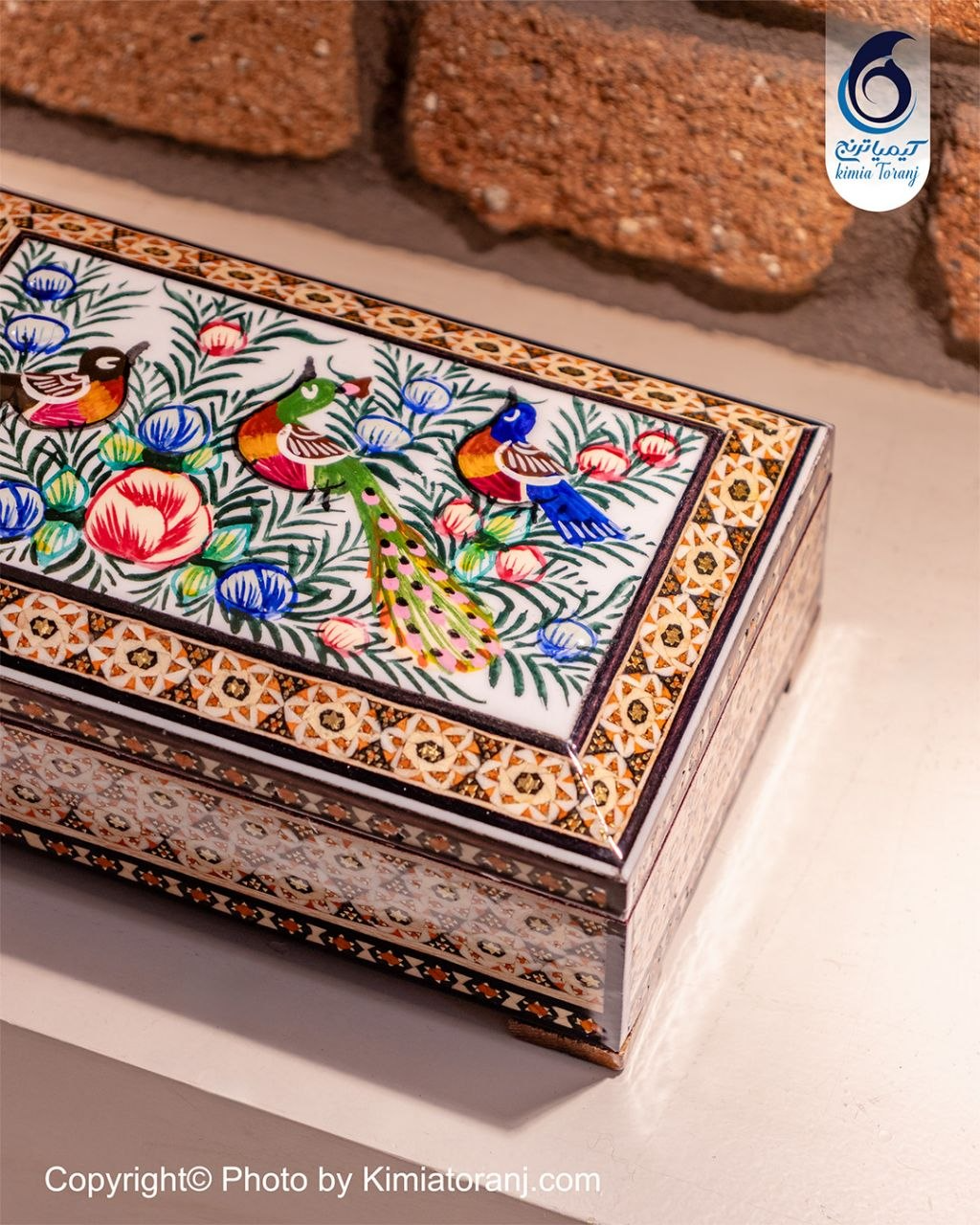 خاتم کاری از هنرهای ظریف و صنایع دستی ایرانی است که سابقه و ریشه ای کهن دارد.خاتم ترکیبی از چندضلعی های منظم با تعداد اضلاع متفاوت با استفاده از مواد اولیه گوناگون در رنگ های مختلف تشکیل می شود.مواد اولیه در ساخت خاتم عبارتند از:انواع چوب،انواع استخوان،مفتول های فلزی،صدف،لاک،نخ پرک،سریشم است که برای محافظت از این هنر، صنایع دستی کیمیاترنج پوشش مقاوم به رطوبت وعدم تغییر رنگ بر روی محصولات خاتم اجرا می کند.